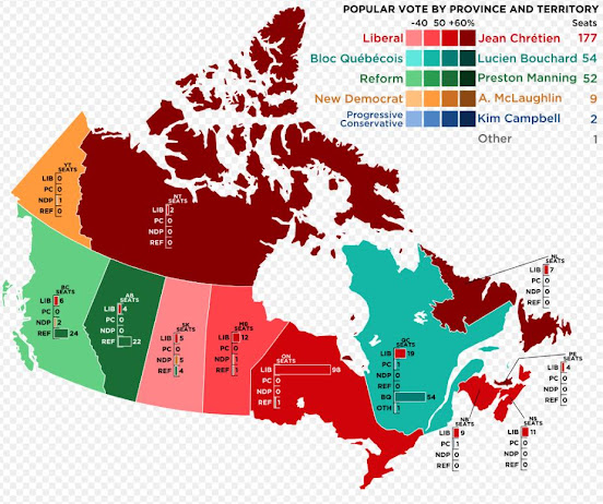 El 25 de octubre de 1993 se celebraron elecciones federales en Canadá. El vencedor fue el partido de centroizquierda Partido Liberal que obtuvo 177 escaños lo que le posibilitó formar gobierno. El autonomista Bloque Quebequés obtuvo 54, el derechista Partido Reformista obtuvo 52, el progresista Nuevo Partido Democrático 9 y el Partido Conservador Progresista 2.