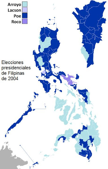 Las elecciones presidenciales y vicepresidenciales de Filipinas de 2004 se celebraron el lunes 10 de mayo de 2004. En las elecciones presidenciales, la actual presidenta Gloria Macapagal Arroyo ganó un mandato completo de seis años como presidenta, con un margen de más de un millón de votos sobre su principal oponente. el actor de cine Fernando Poe Jr.